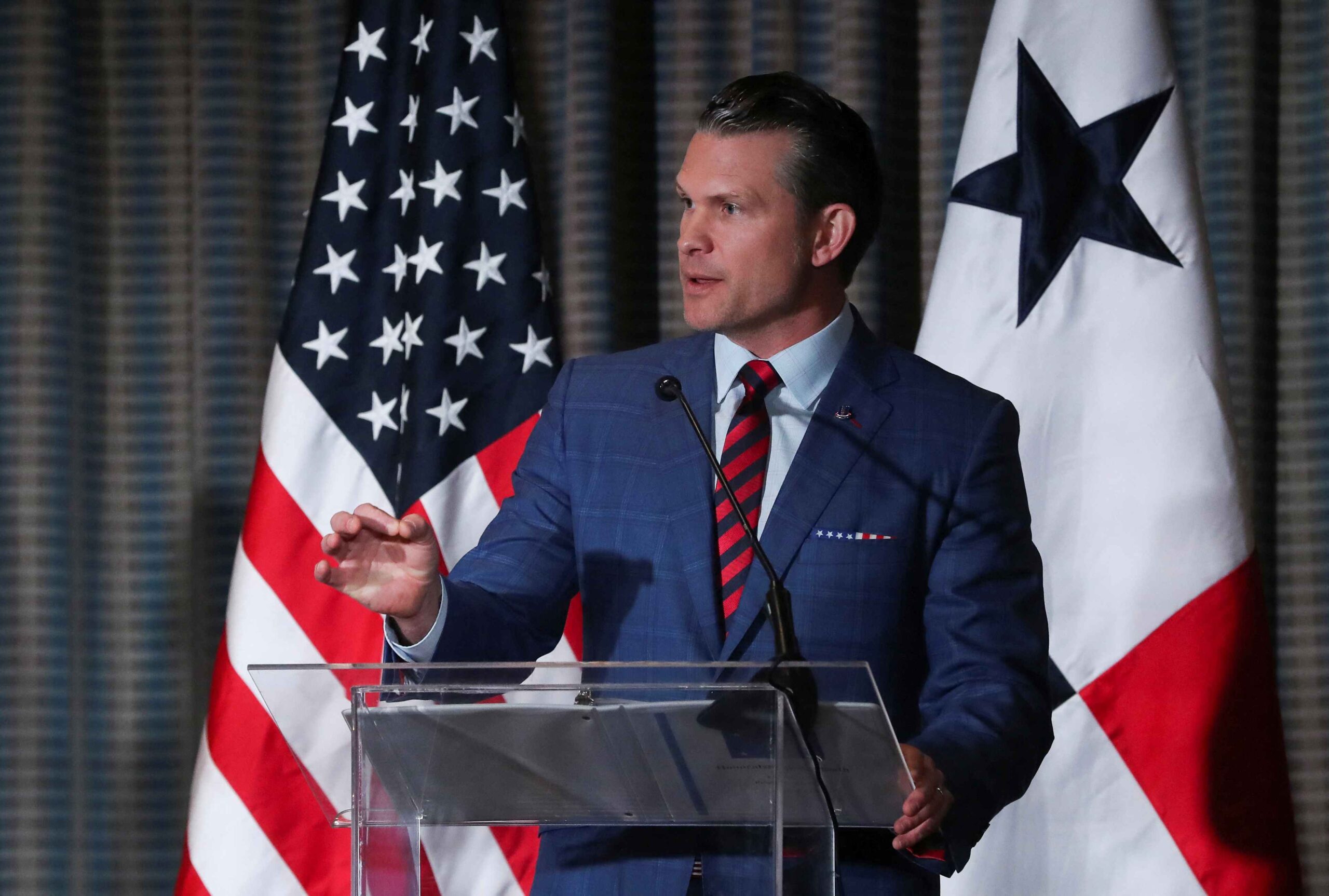 U.S. Secretary of Defense Pete Hegseth speaks during a press conference, in Panama City, Panama April 9, 2025. REUTERS/Aris Martinez