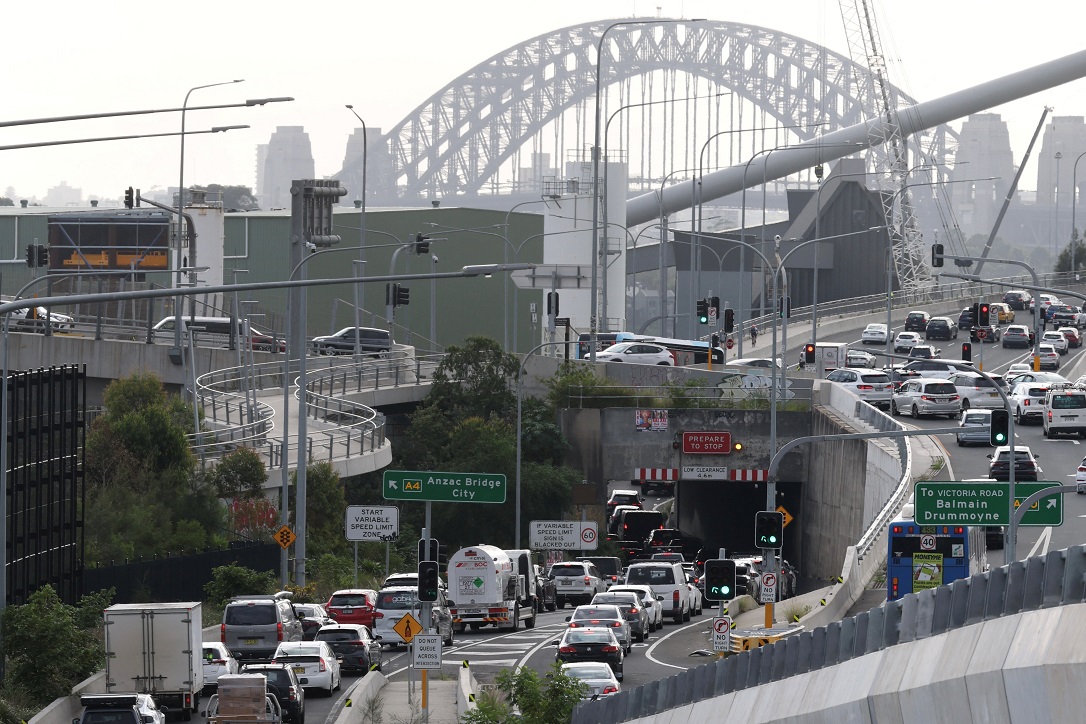 Cars queue to cross Anzac Bridge during peak hour in Sydney, Australia, March 30, 2026. REUTERS/Hollie Adams/File Photo