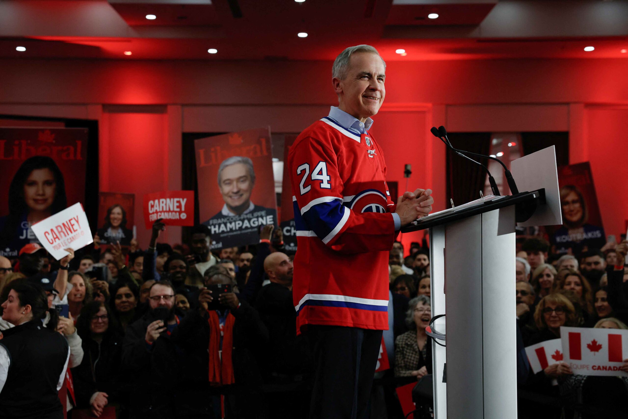 Canada's Prime Minister Mark Carney attends a rally during his Liberal Party election campaign tour in Laval, Quebec, Canada April 22, 2025. REUTERS/Carlos Osorio