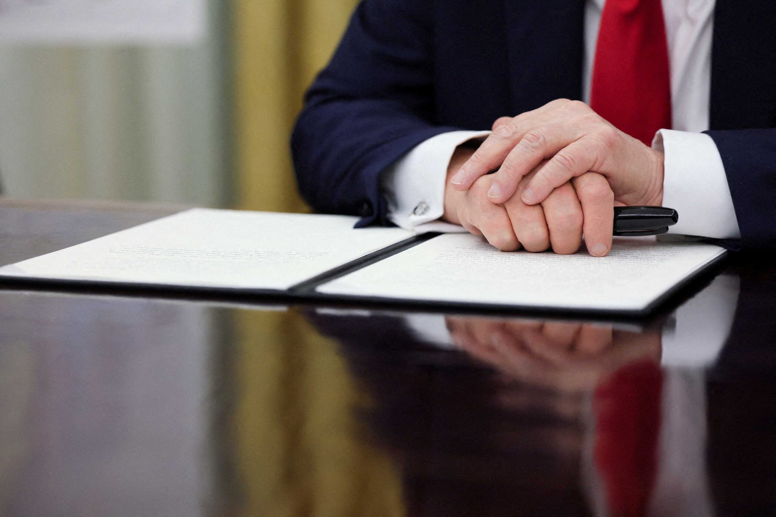 U.S. President Donald Trump holds a pen on the day he signs an executive order related to the U.S. live entertainment ticketing industry in the Oval Office at the White House in Washington, D.C., March 31, 2025. REUTERS/Leah Millis