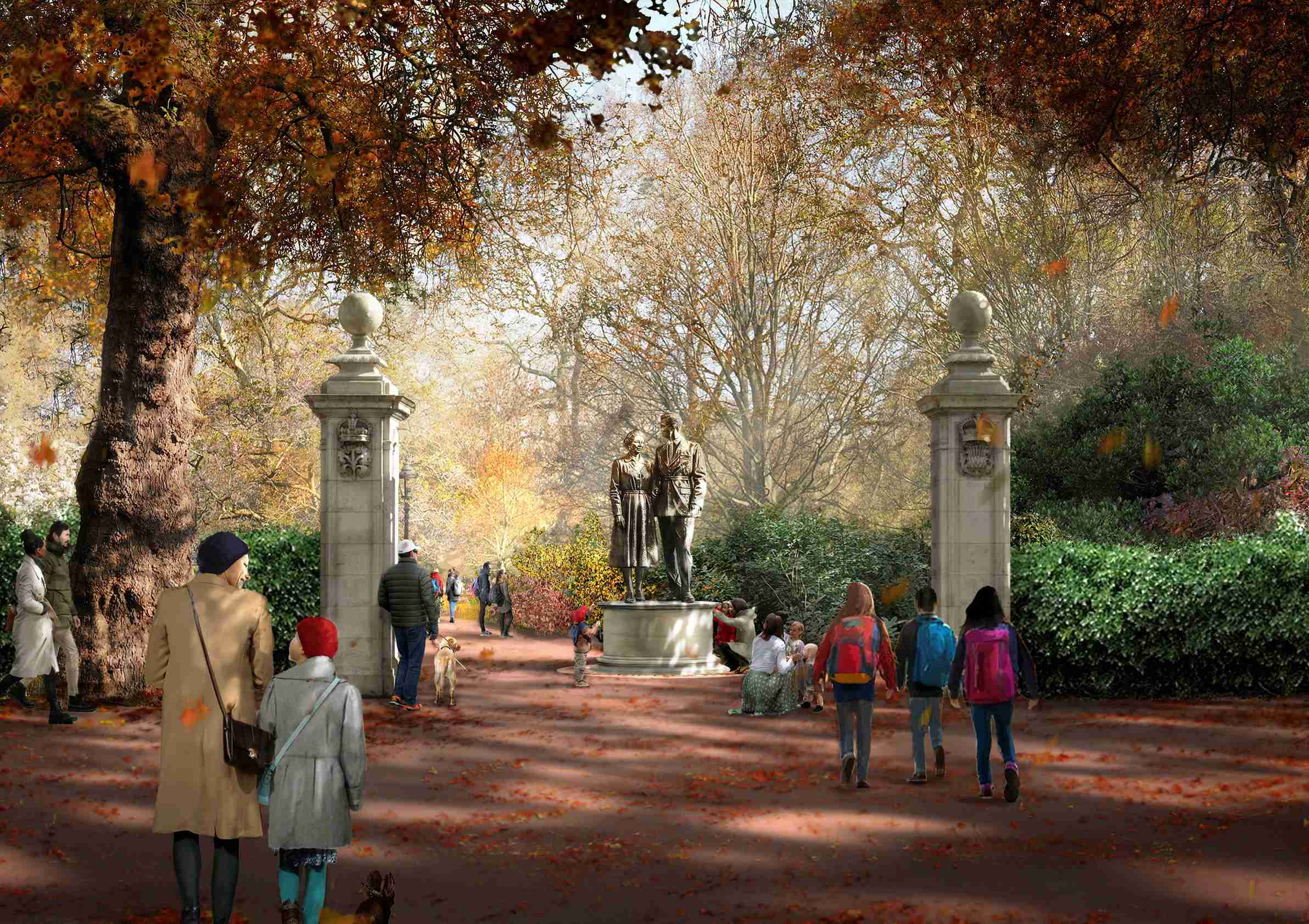 St James’s Park, which is located opposite Buckingham Palace, was chosen as the best site to pay tribute to her reign, and under the plan announced on Tuesday the park will be reshaped, with two new areas of gardens and two new gates.