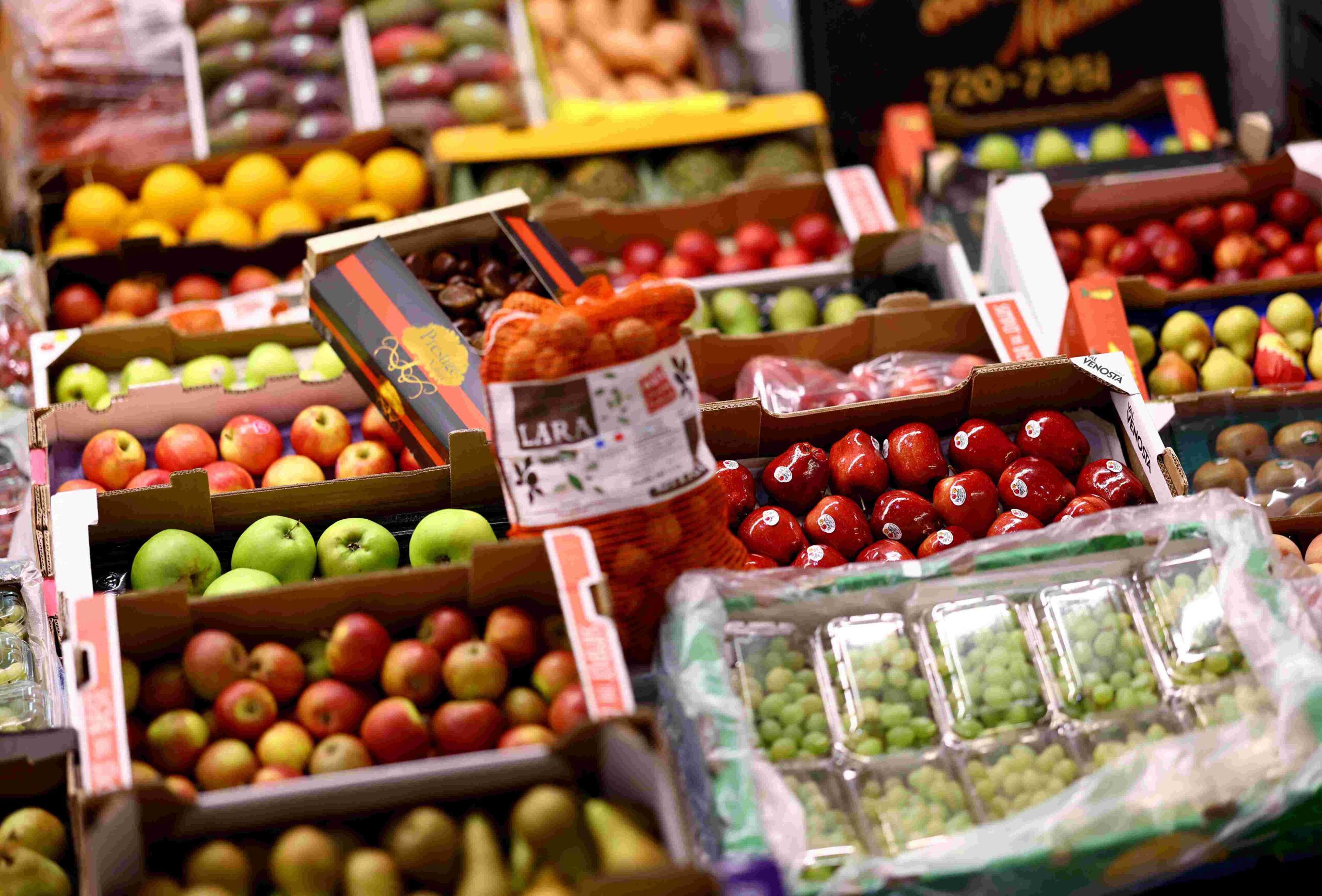 Fruits are displayed for sale during early morning business hours at New Covent Garden Market in London, Britain, October 8, 2024. REUTERS/Hannah McKay